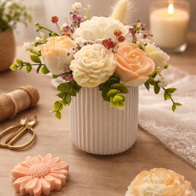 Unsere liebevoll gestalteten Kerzenblumensträuße vereinen dekorative Eleganz mit kreativer Handarbeit und sind ein besonderer Blickfang für jeden Raum.